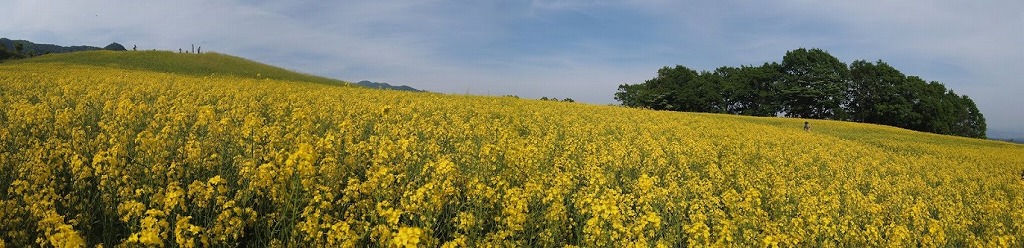 菜の花畑:スキー場のゲレンデに菜の花が一面に咲いていました。お盆のころにはヒマワリが咲くそうです。
